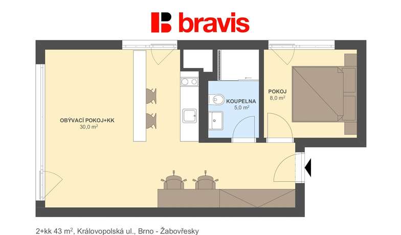 Tato jednotka o dispozici 2+kk a výměře 43 m² s balkonem představuje dokonalou harmonii mezi stylem a funkčností. Interiér je navržen tak, aby vám poskytl maximální pohodlí bez nutnosti cokoli dokupovat.