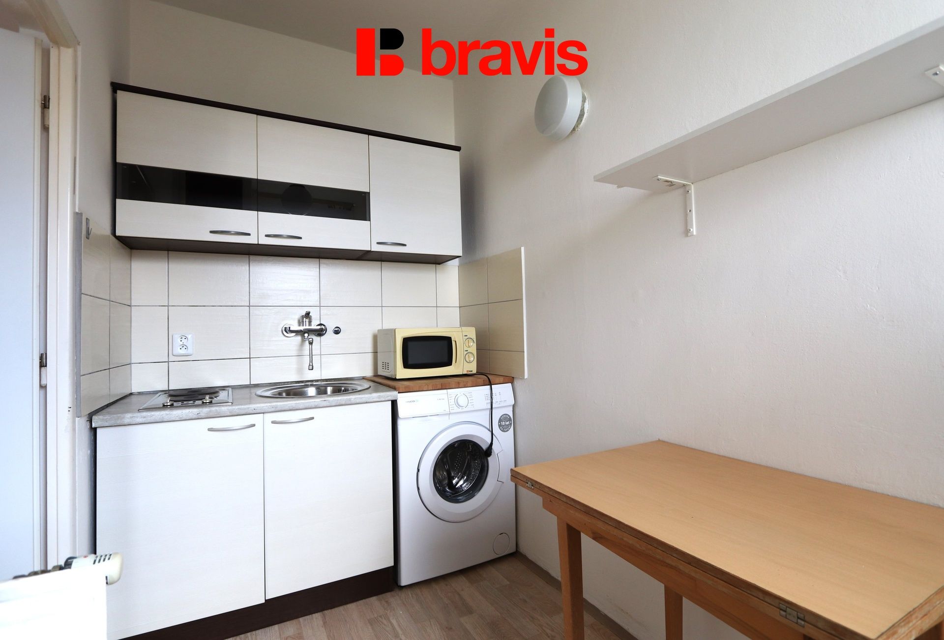 Kuchyně je vybavená varnou deskou, stolkem. Pokoj je nezařízený