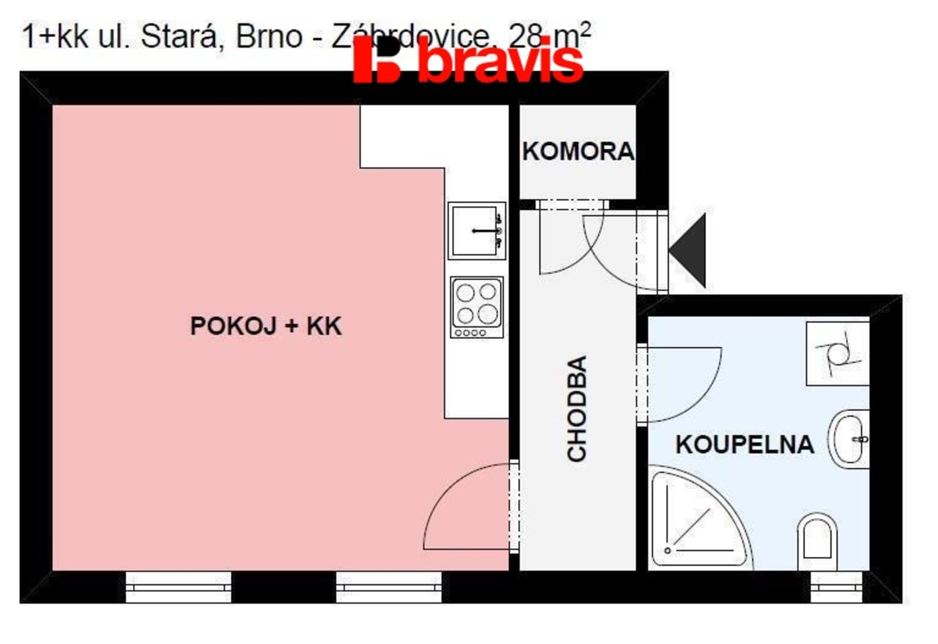 Ve výhradním zastoupení majitele nabízíme k pronájmu zařízený byt o dispozici 1+kk o užitné ploše 28 m2 na velmi žádané adrese – Brno, ulice Stará.