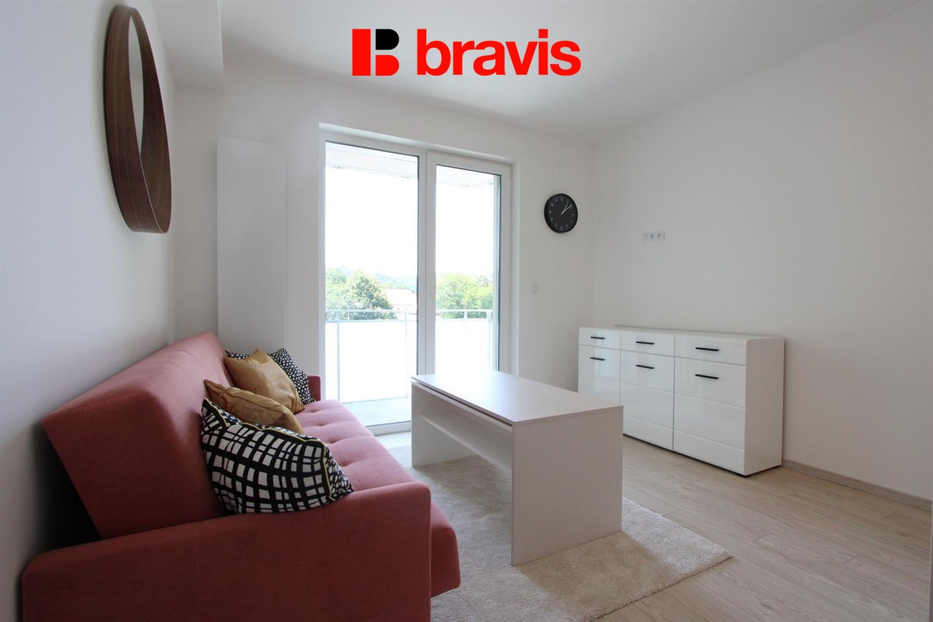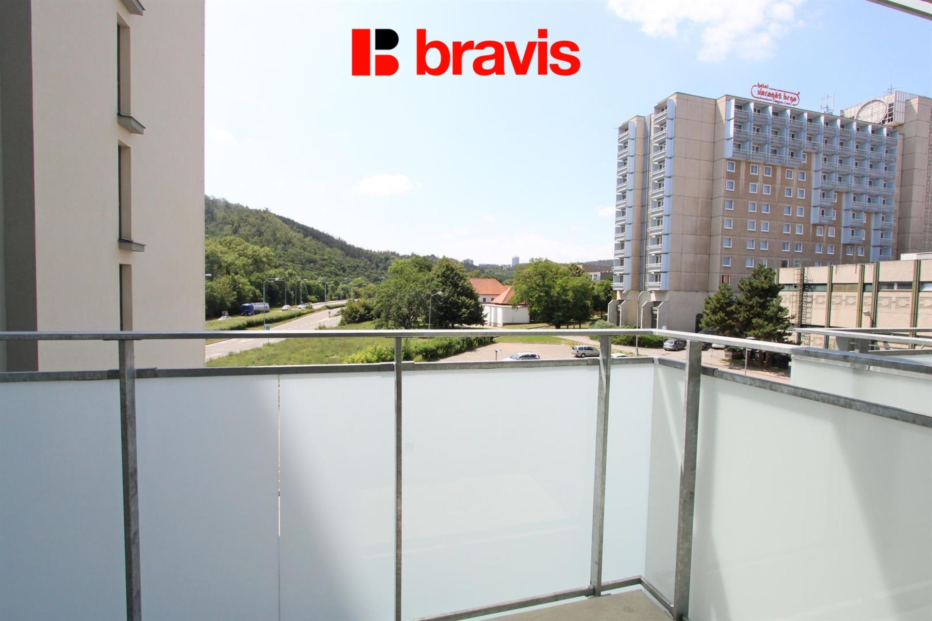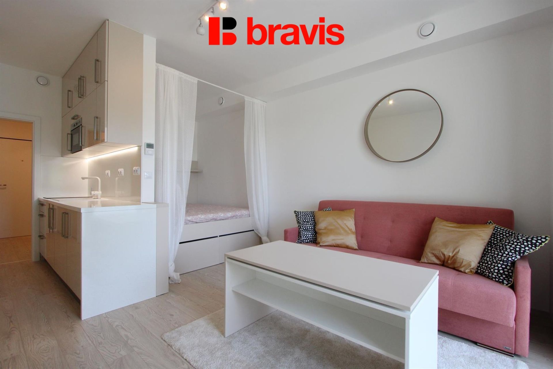 Pronájem bytu 1+kk, ulice Poříčí, Brno - Pisárky, rezidence Riverside, balkon, sklep, parkování, zařízený