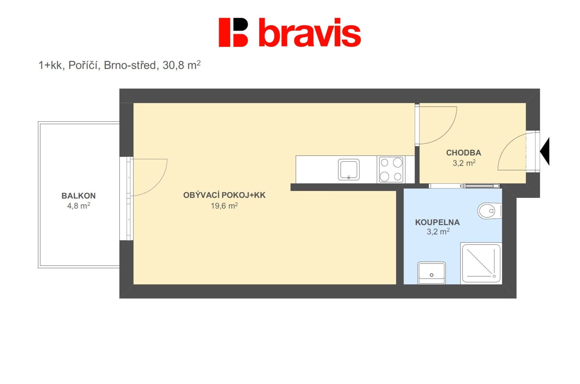 Ve výhradním zastoupení majitele nabízíme k pronájmu byt o dispozici 1+kk v Brně - Pisárkách na ulici Poříčí v rezidenci Riverside.