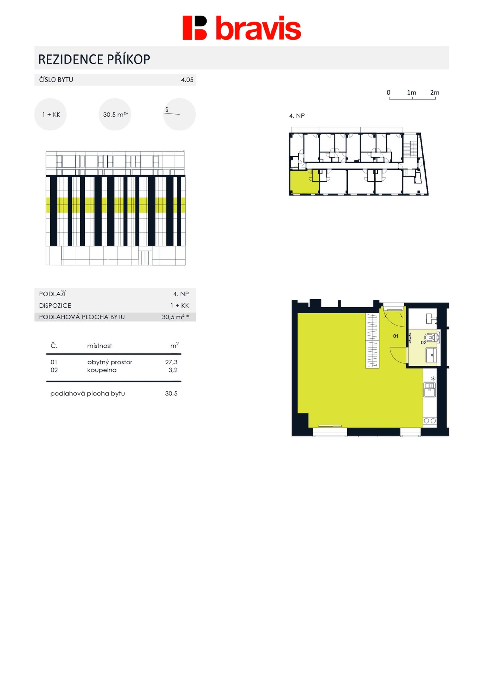 Inzerovaný byt 1kk o celkové ploše 30,5 m2 se nachází v 5.NP.