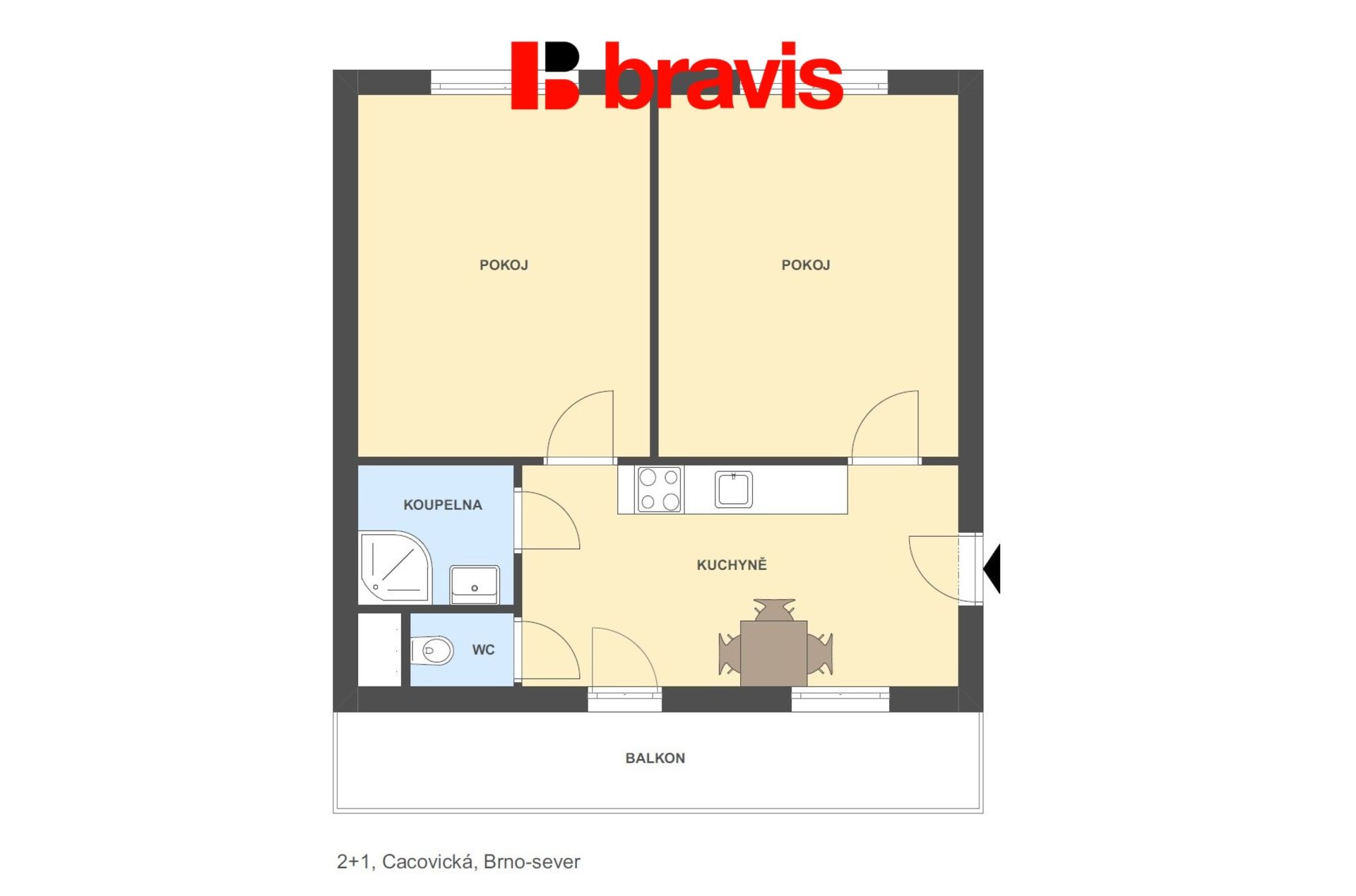 Ve výhradním zastoupení majitele nabízíme k pronájmu byt 2+1 na ulici Cacovická v Brně - Husovicích.