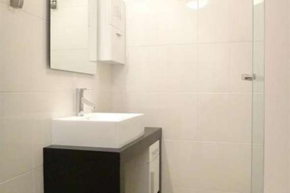 V koupelně je sprchový kout, umyvadlo, pračka a kombinovaný plynový kotel, který slouží k vytápění bytu a ohřevu vody.