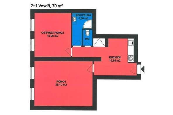 Byt o celkové podlahové ploše 70 m2 se nachází ve 2. patře secesního domu po kompletní rekonstrukci.