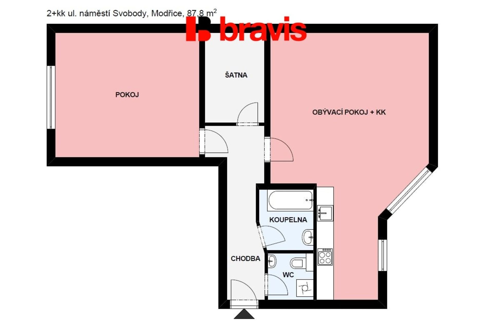 Pronájem bytu 2+kk, 87,7 m2, ul. Náměstí svobody, Modřice, Brno - venkov, parkovací stání