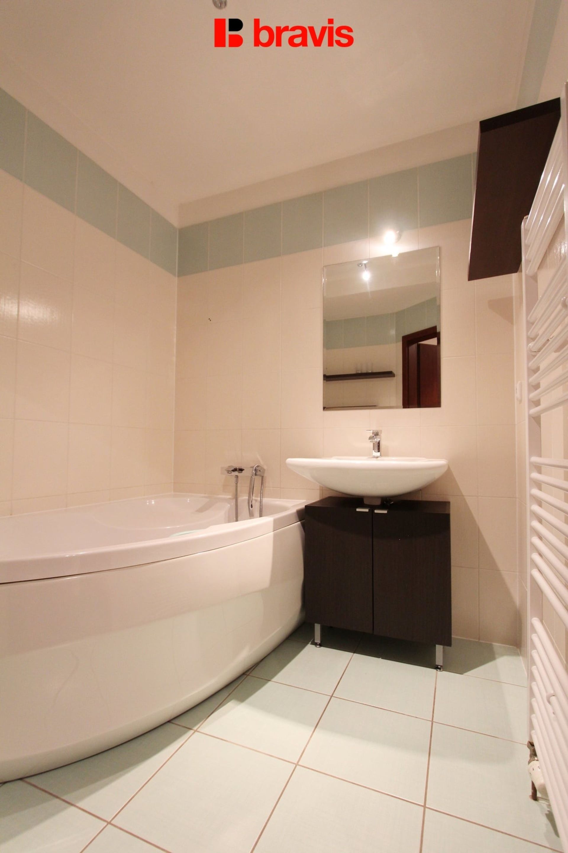 Koupelna je vybavena rohovou vanou a samostatnou toaletou. Vstupní chodba je prostorná, což oceníte především při příchodu domů nebo návštěvách.