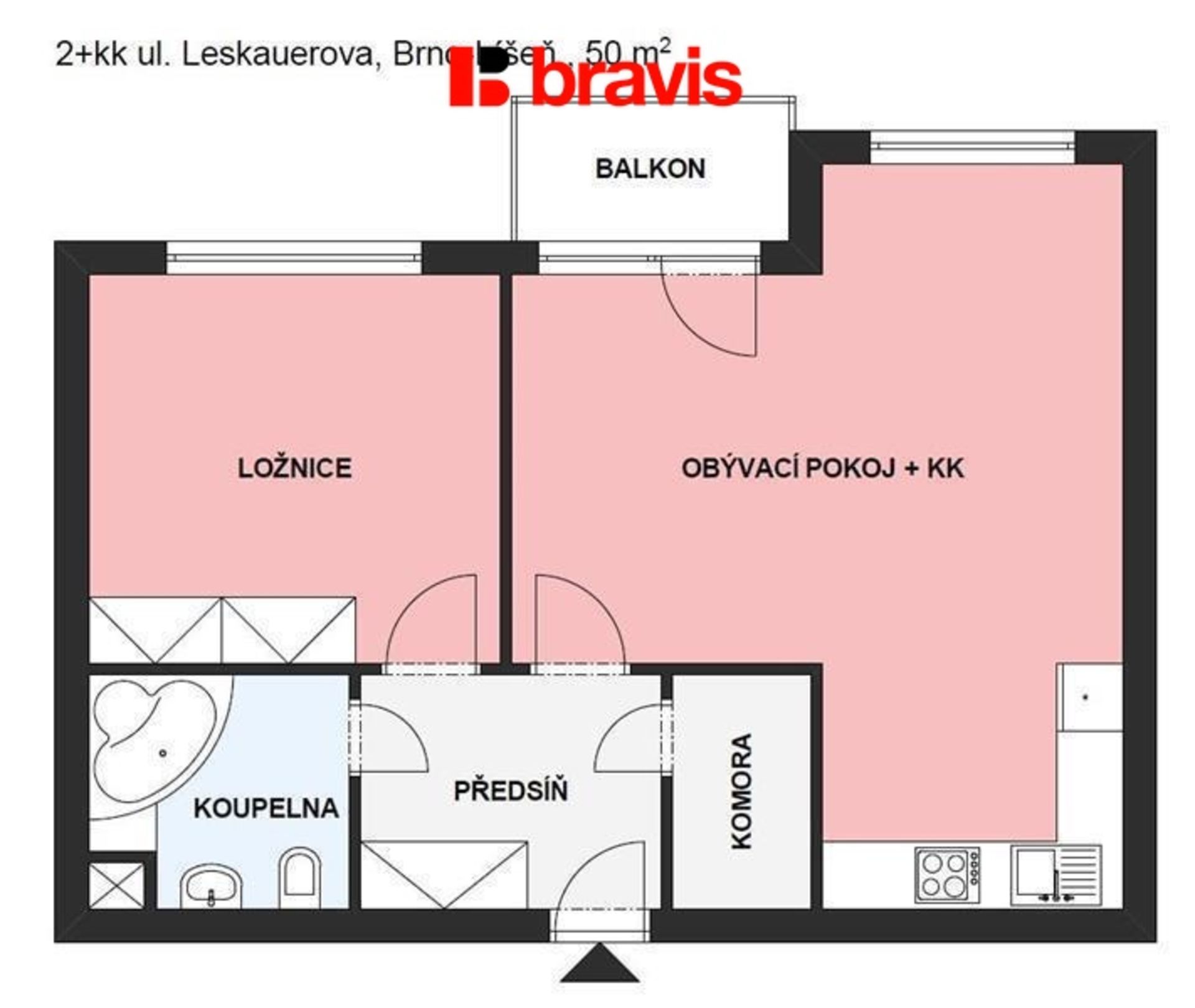 Ve výhradním zastoupení majitele nabízíme k dlouhodobému pronájmu světlý a velmi příjemný byt o dispozici 2+kk na ulici Leskauerova v oblíbené lokalitě Brno – Líšeň.