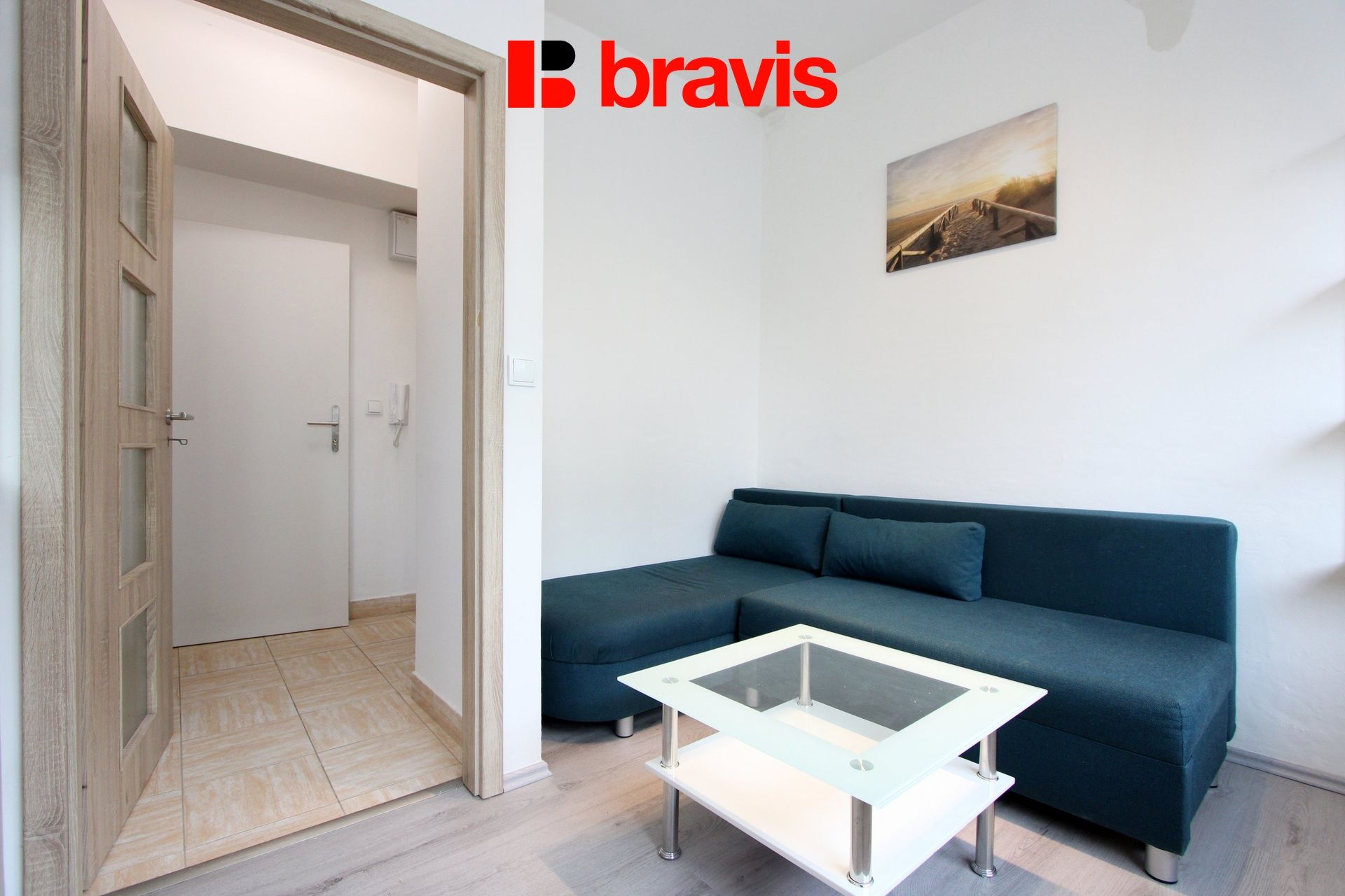 Byt obsahuje předsíň, obytný prostor s kuchyňským koutem, ložnici a koupelnu.