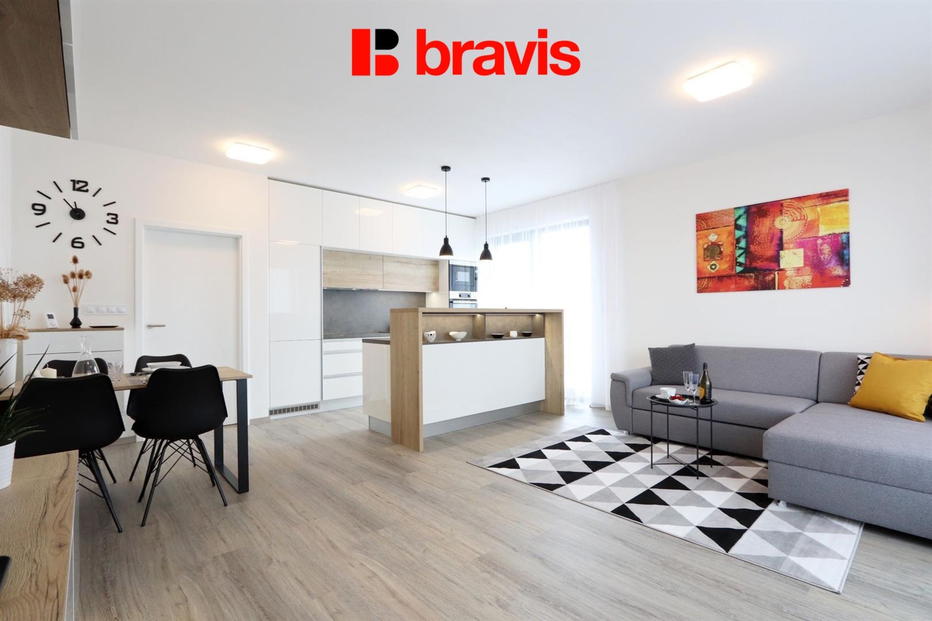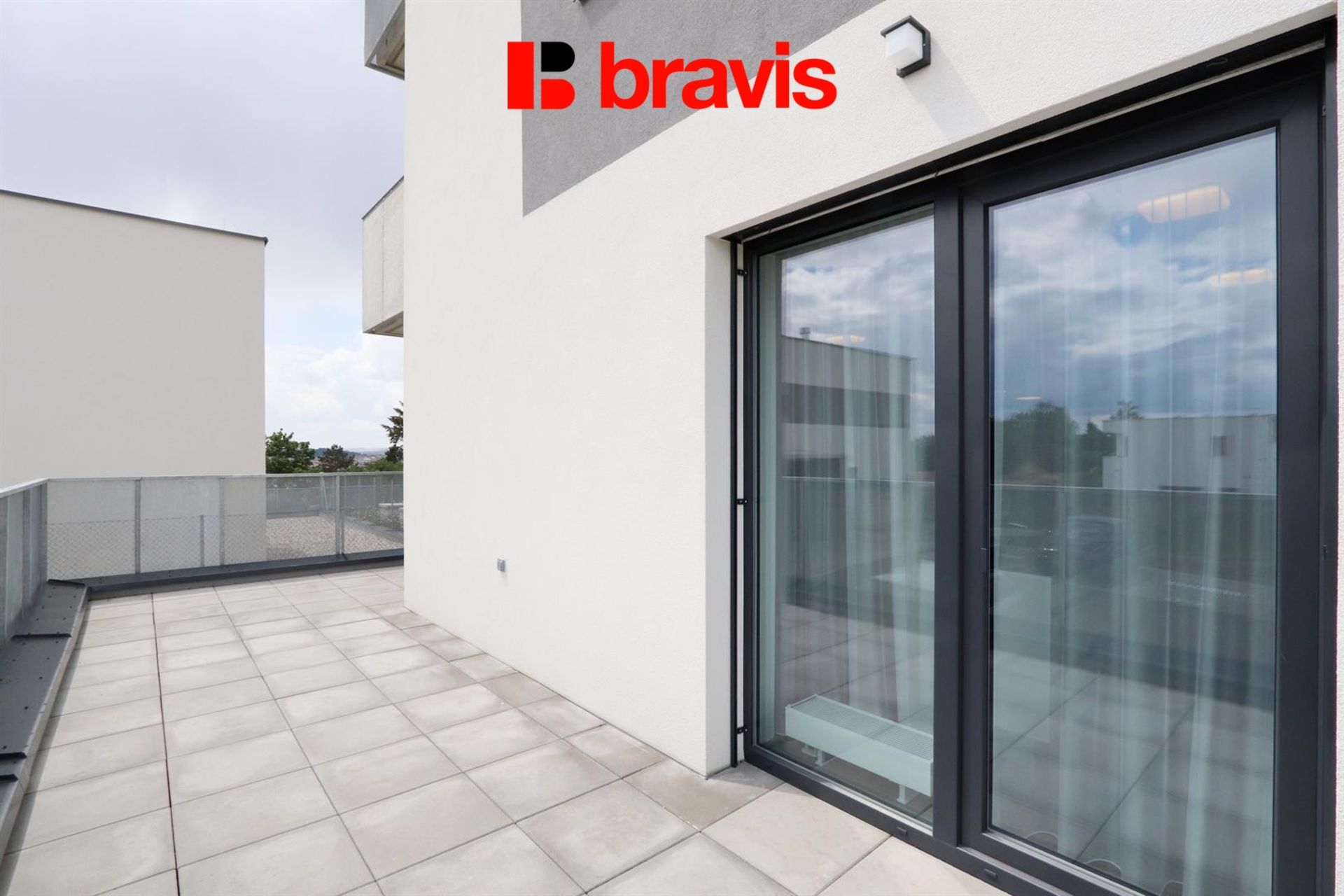 Pronájem bytu 2+kk, ulice Kumpoštova, Brno-Sadová, zařízený, výtah, velká terasa, sklep, garážové stání v ceně