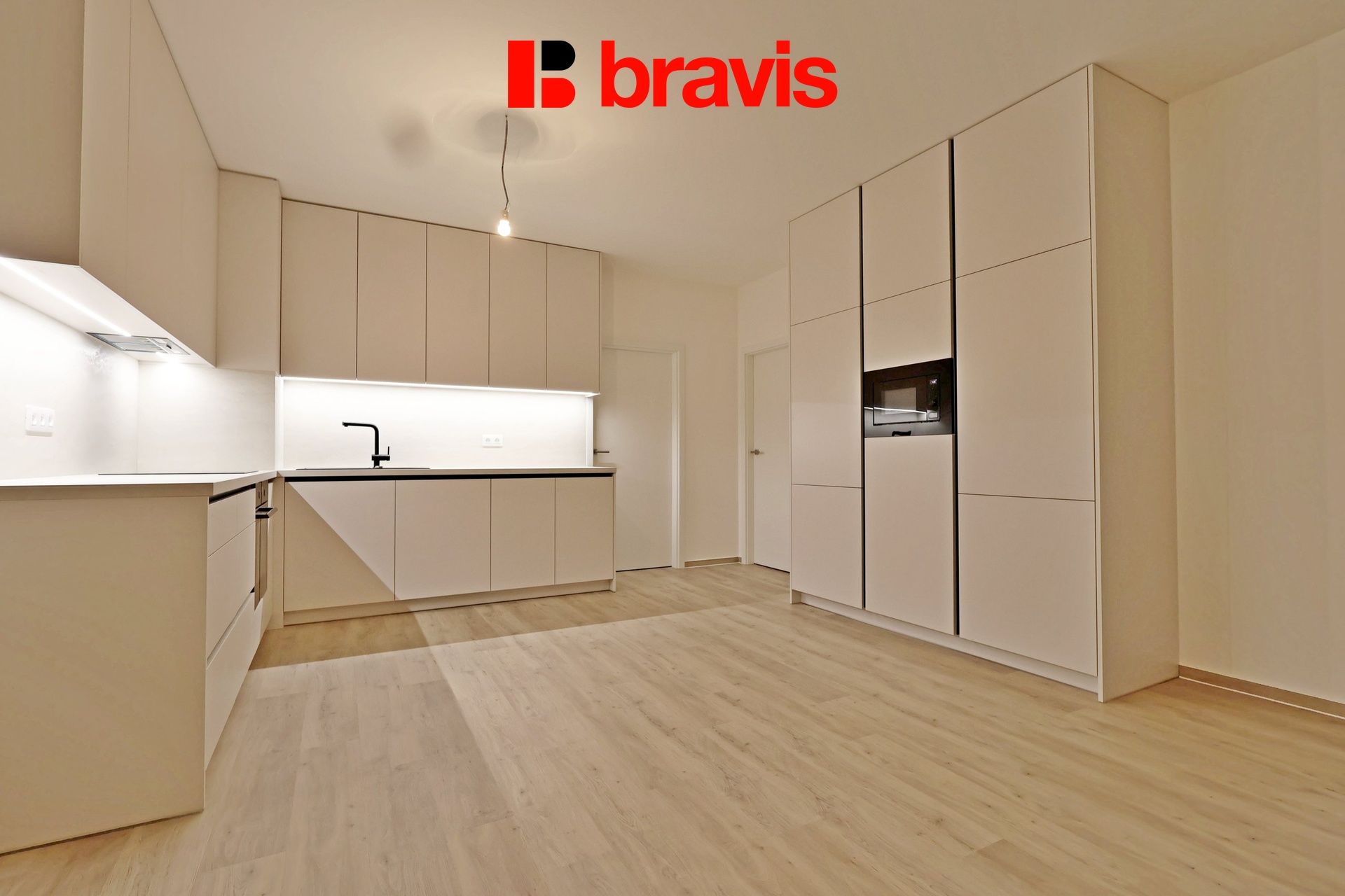 Celková plocha bytu činí 75 m2. Kuchyňská linka je aktuálně ve fázi realizace a její součástí budou i spotřebiče jako lednice, trouba, sporák, digestoř a myčka.