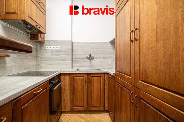 Byt je nabízený částečně zařízený - kuchyňská linka se spotřebiči (varná sklokeramická deska, lednice s mrazákem, digestoř, myčka), skleněné vitríny v pokoji, šatní skříň.