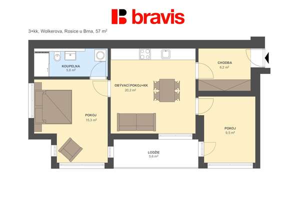 - Dispozice: 3+kk