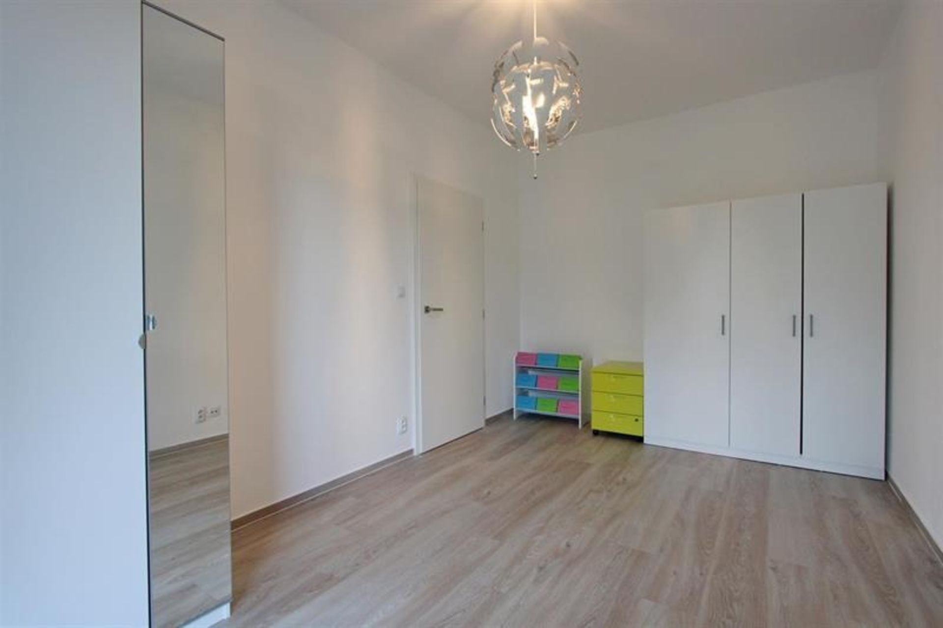 V dětském pokoji jsou dvě šatní skříně. Z pokoje je druhý vstup na terasu.
