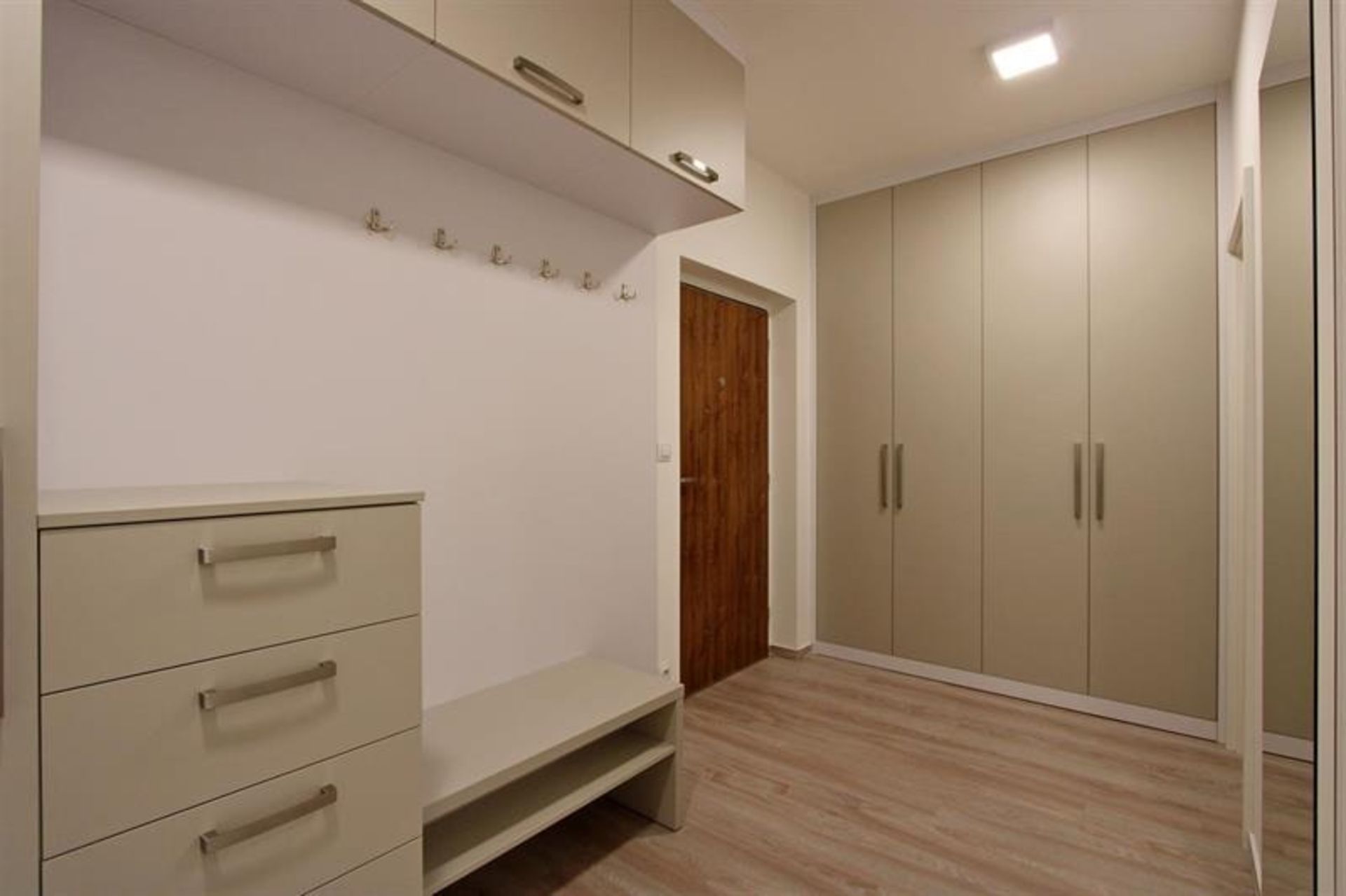 Velkou výhodou bytu jsou úložné prostory v celém bytě - šatna a dvě vestavné skříně na chodbě.