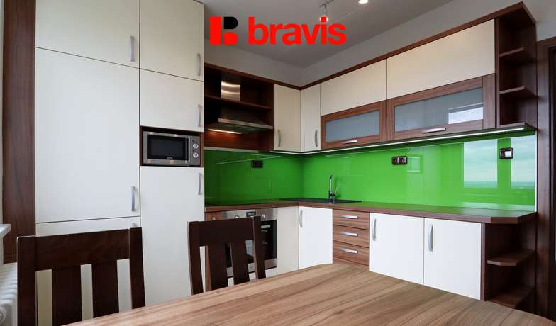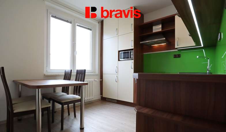 Částečně zařízený byt je prosvětlený a nabízí krásný výhled na Brno.