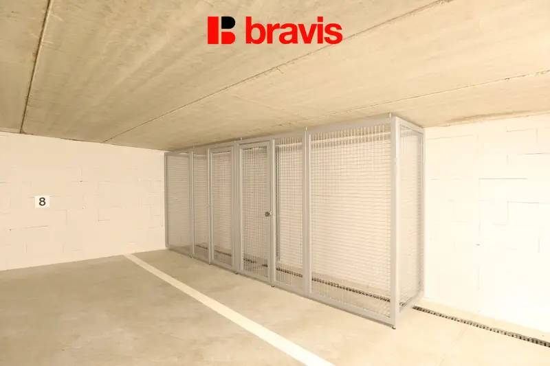 Parkovací stání se nachází v suterénu vedle nového bytového domu.