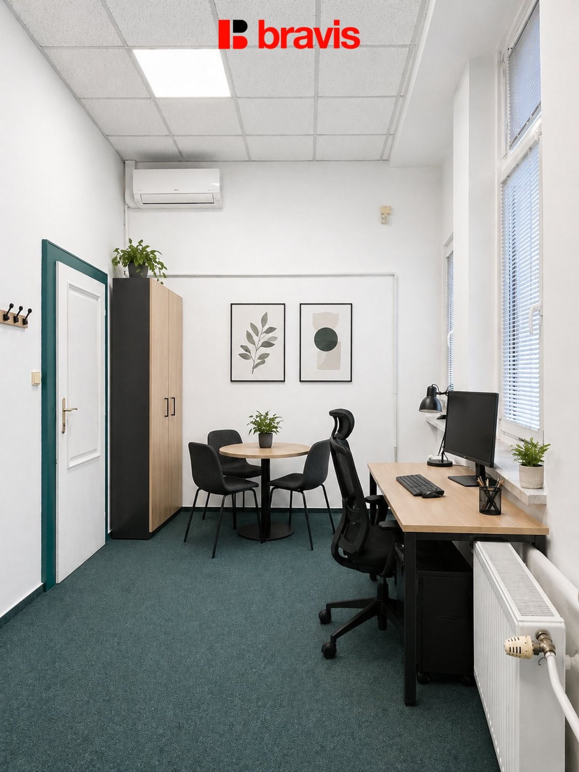 Kancelář je vhodná pro menší firmu, živnostníka nebo administrativní činnost.