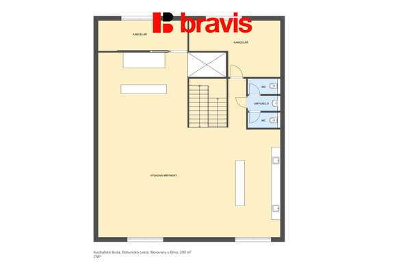 • Administrativa a vzdělávání: V patře se nachází školící místnost s projekcí a samostatná kancelář.