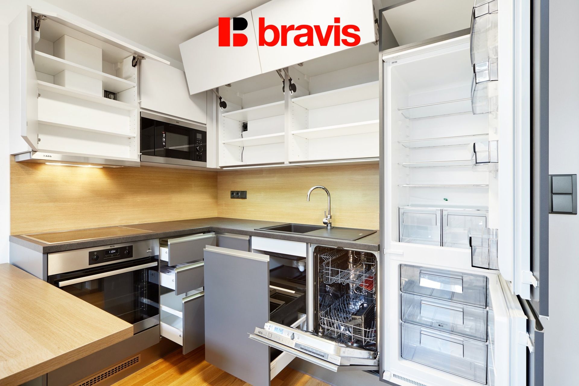 Kuchyňská linka Lednice Sporák Televize Myčka Výtah