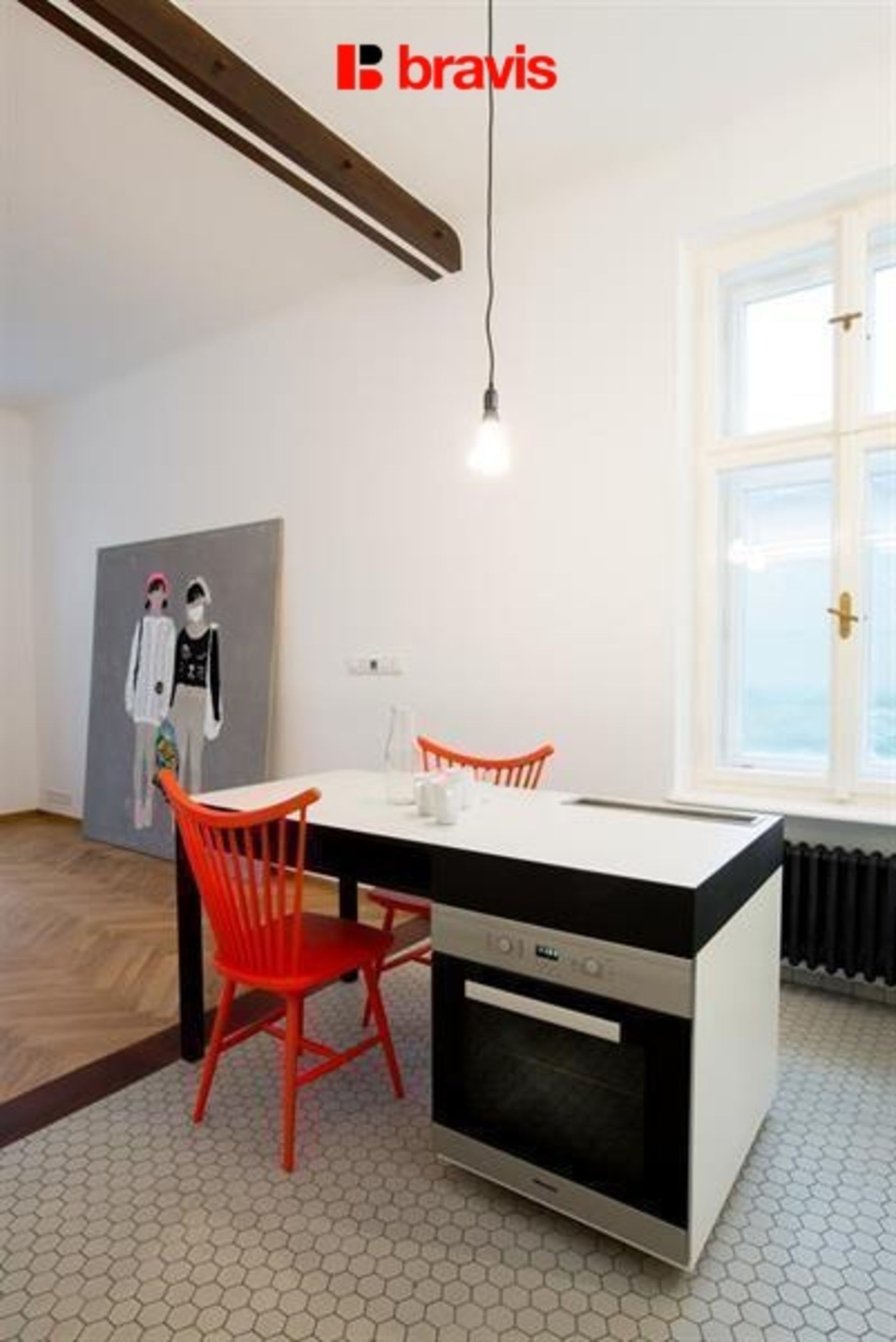 Pronájem moderního bytu 1+kk, Brno - Stránice, ul. Údolní, po kompletní rekonstrukci, společná zahrada, částečně zařízený, internet v ceně