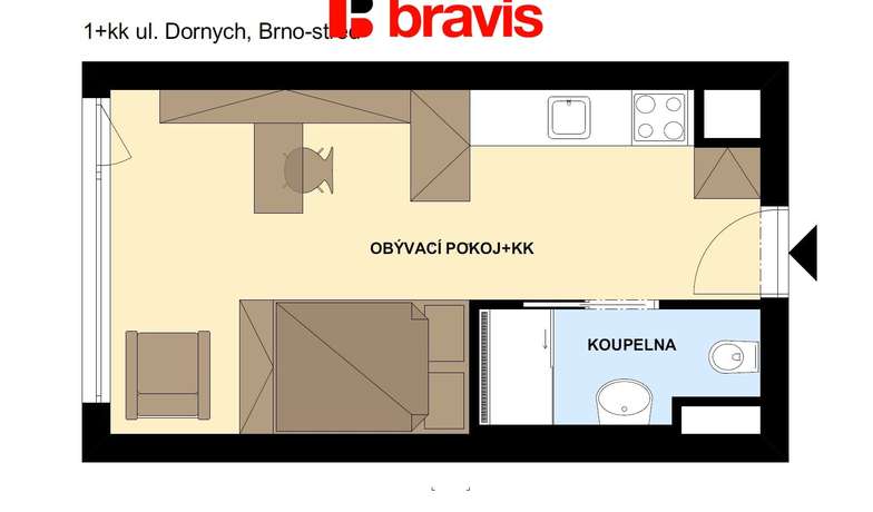 Moderní, bezpečné, metropolitní bydlení na dosah centra Brna. Tím vším a mnohem více je jednotka o velikosti 1+kk v rezidenčním domě na ulici Dornych v Brně.