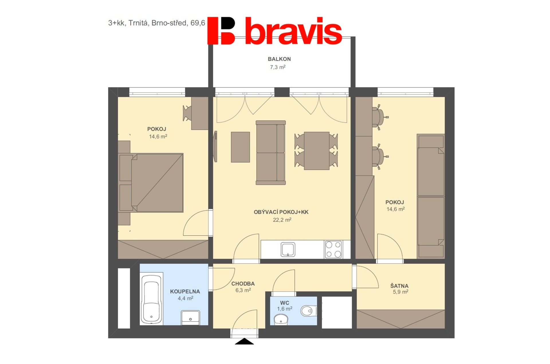 - Typ:3+kk (Byty)