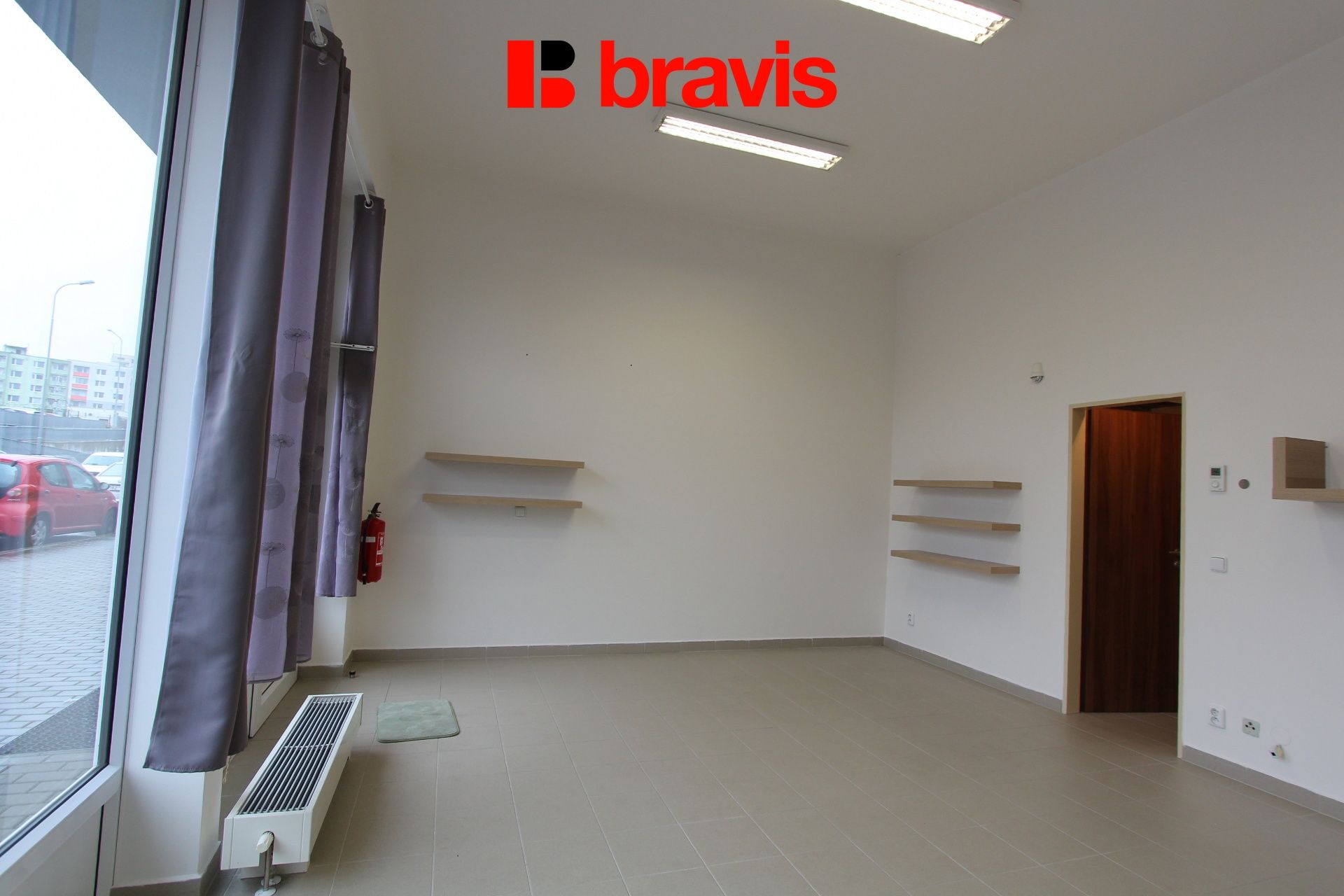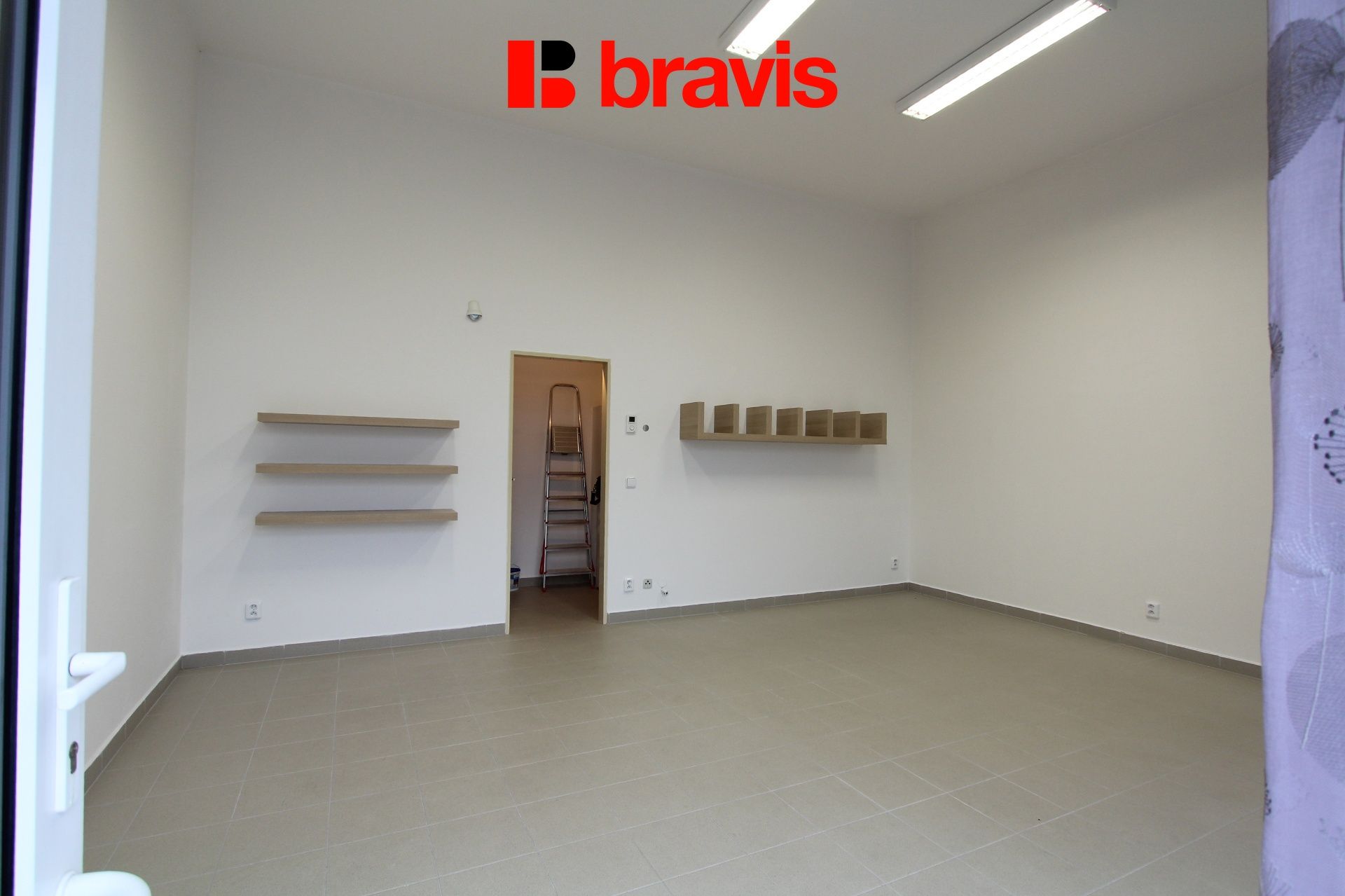 Pronájem nezařízených reprezentativních obchodních prostor, 31,75 m2, Brno - Kamechy, ul. Říčanská, sociální zázemí se sprchou, 2x parkování