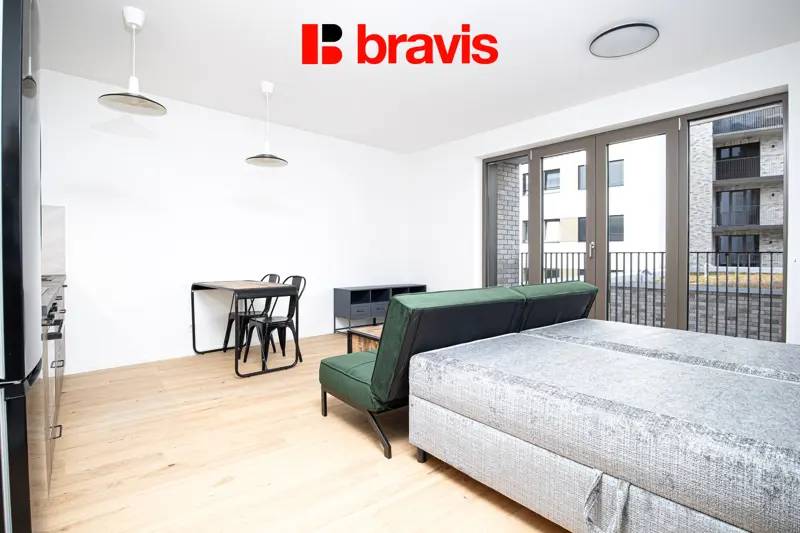 Pronájem novostavby 1+kk, Brno - Zábrdovice, ulice Bratislavská, lodžie, zařízené