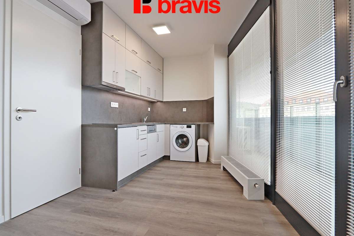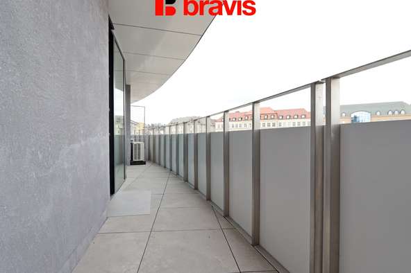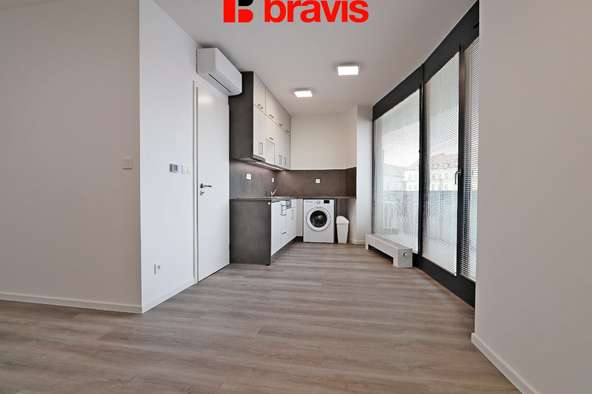Exkluzivně nabízíme k pronájmu bytovou jednotku s dispozicí 1+kk v novém polyfunkčním domě VIVIENA II na nábřeží řeky Svratky při ulici Vídeňská v Brně - Štýřicích.