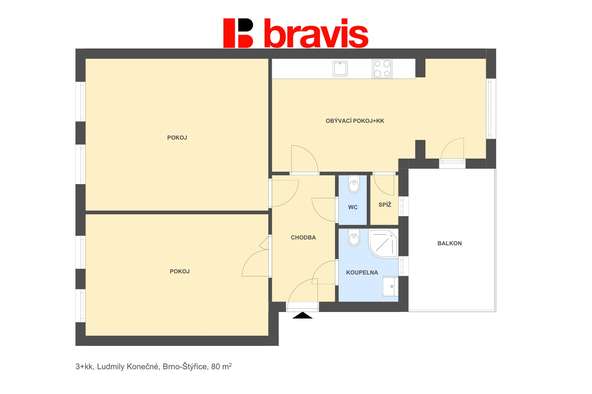 Byt se nachází v 1.NP cihlového domu. Celková plocha bytu 80 m2 plus 16 m2 prostorná terasa.