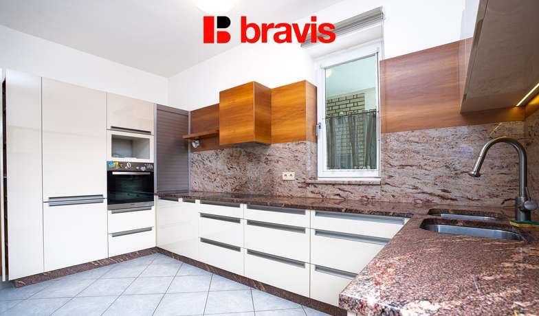 Kuchyně je vybavena kvalitní kuchyňskou linkou se spotřebiči – sklokeramickou varnou deskou, troubou, myčkou, digestoří, mikrovlnnou troubou a prostornou lednicí s mrazákem. Na kuchyň navazuje světlý obývací pokoj s krbem a klimatizací. Z obývací části je přímý vstup na terasu s grilem, která nabízí příjemné posezení a soukromí.