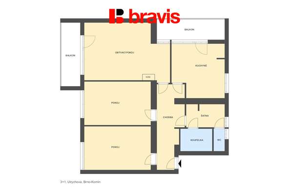 Nabízíme k prodeji mimořádně prostorný byt 3+1 o celkové ploše s dvěma lodžiemi (110 m²) na ulici Ulrychova v žádané městské části Brno-Komín.